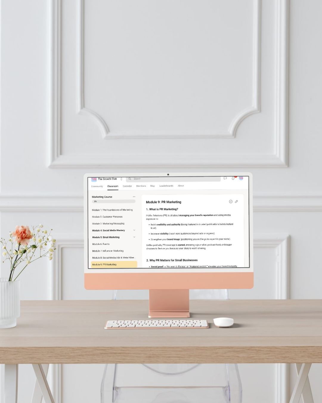 This isn’t just another course library or content dump. The Growth Club gives you a step-by-step system, regular accountability, and real support from someone who’s been where you are. It’s built specifically for women growing businesses alongside a 9–5, so it’s focused, actionable, and designed to move the needle, without burning you out.